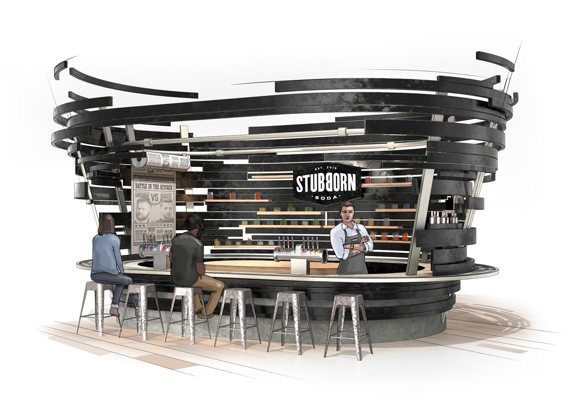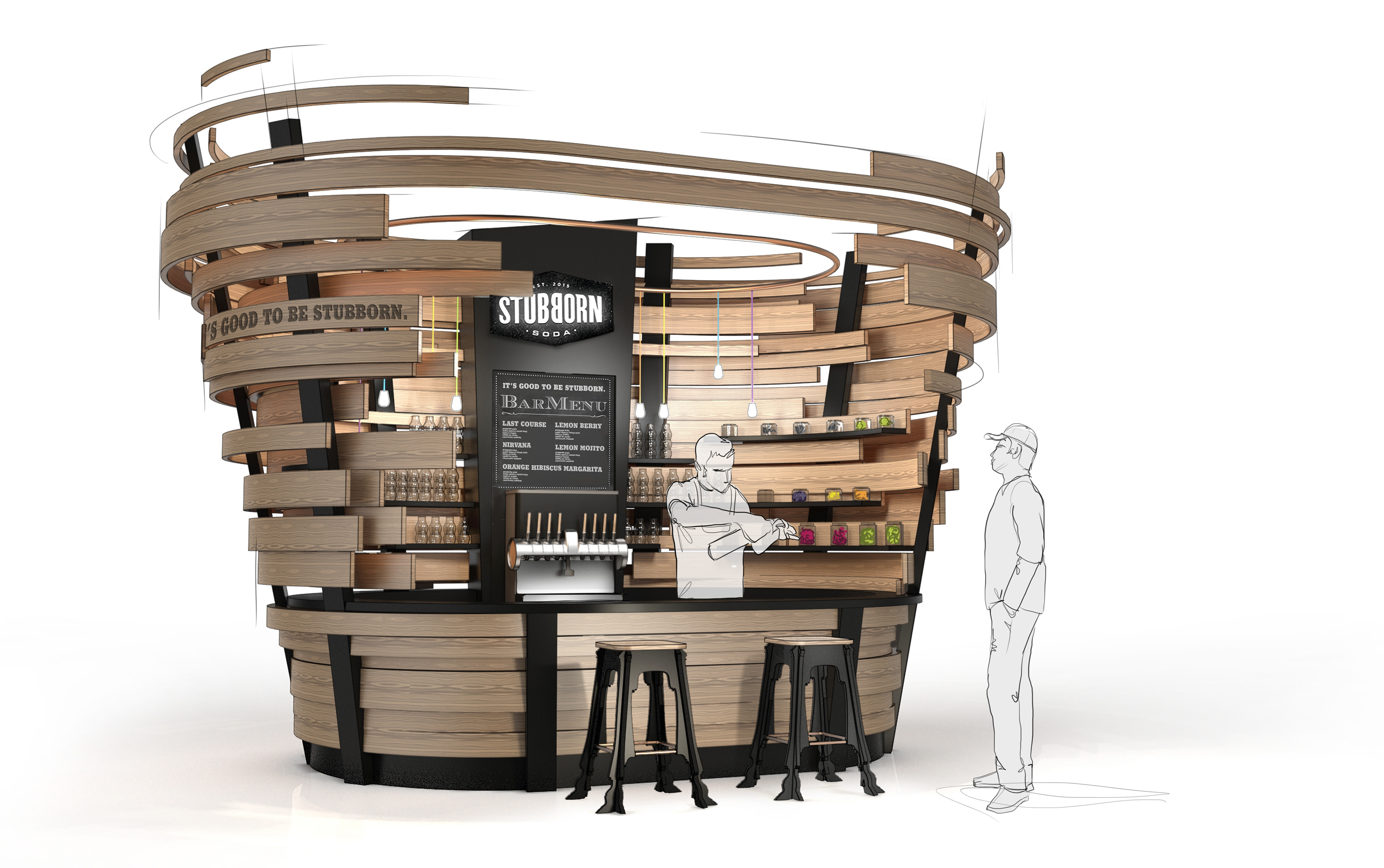 Creating a physical brand experience around the Stubborn craft soda brand.